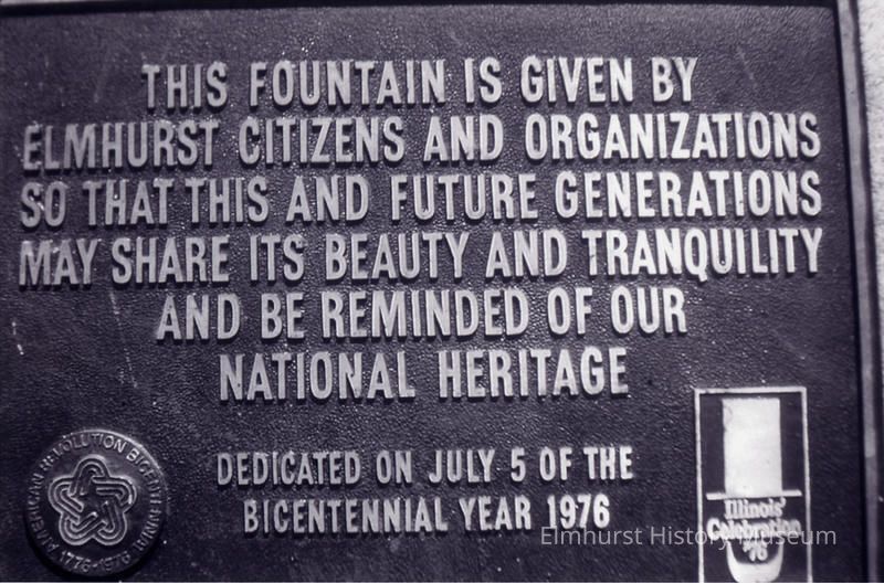On back: "Bicentennial Fountain Plaque Wild Meadows Trace"