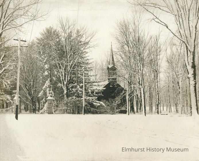 On back: Byrd's Nest Chapel / Built in 1864 - First Service Ap. 23, 1865 / Used until 1941 - Razed / Elmhurst Historical Commission