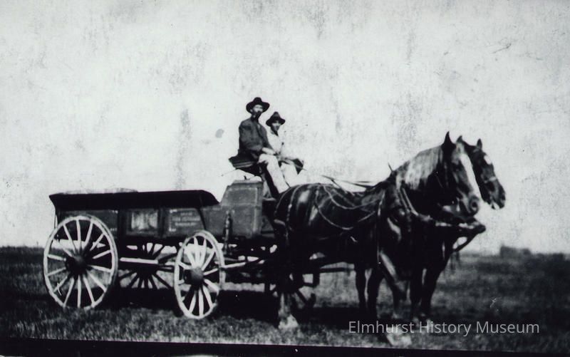 William Blume, right, and Otto Blume seated in the driver's seat of a horse-drawn wagonPhotograph Details