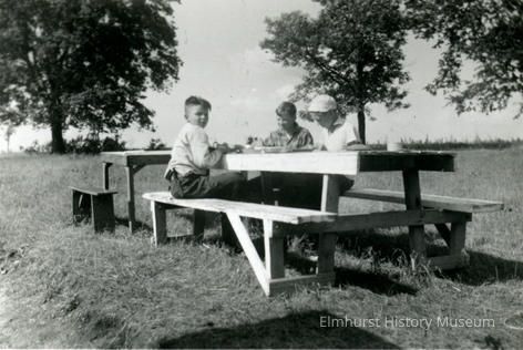 Jim Taylor, Ronald Carlson, and George Orcutt doing handicraft, Camp Villa Boy Scout CampPhotograph Details