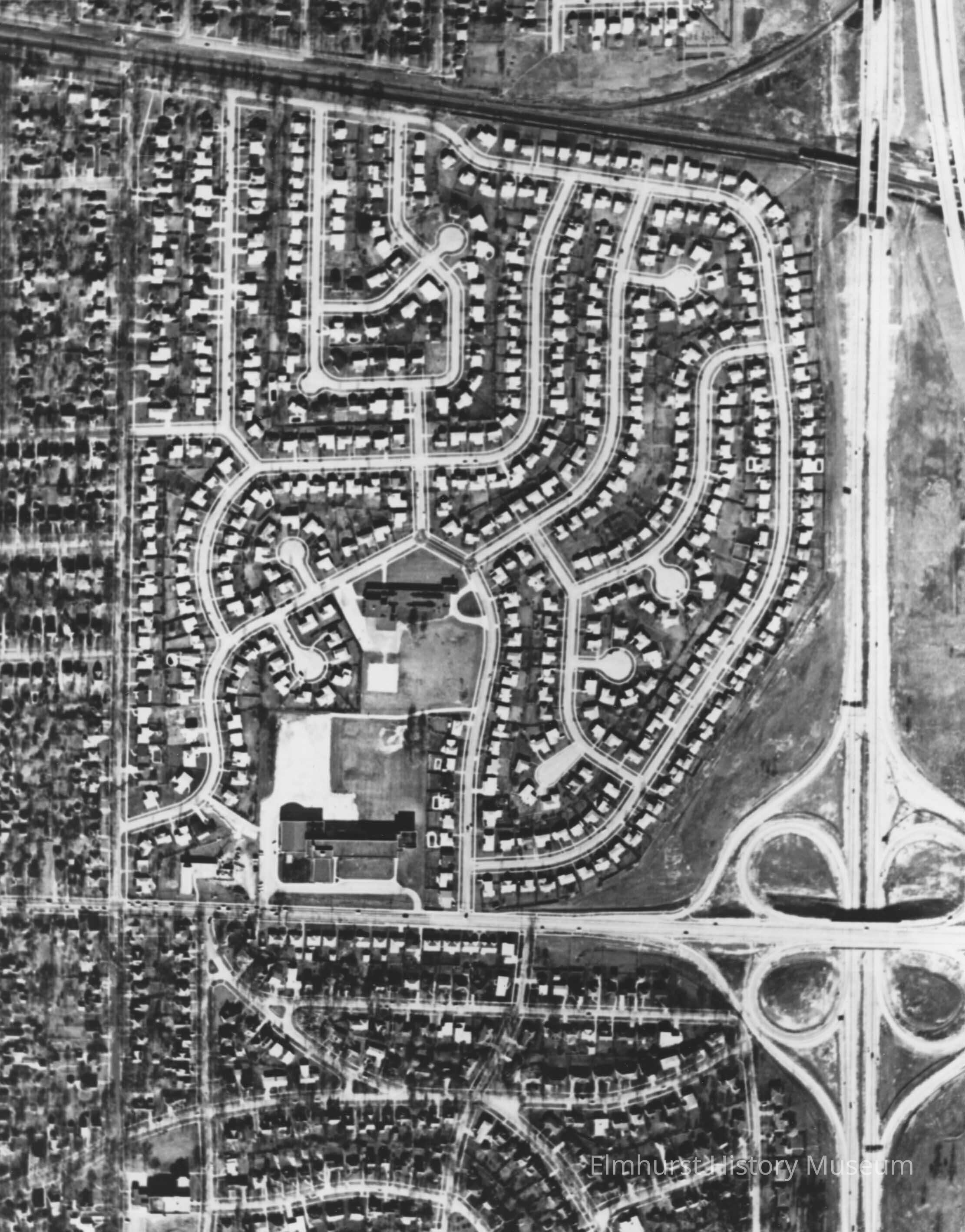 Aerial view of Brynhaven Subdivision. It is bordered by Poplar Avenue on the west, I-290 on the east, St. Charles Road on the south and Park Avenue on the north. It was developed circa 1954-1958.Photograph Details
