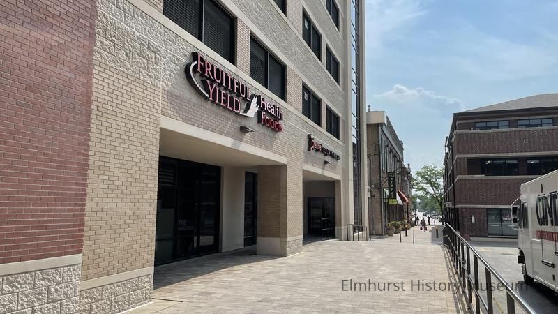 Fruitful Yield Health Foods and Orange Theory Fitness at 135 N. Addison, on the first floor of the Addison Parking Deck, viewed from Schiller Court looking east.Photograph Details