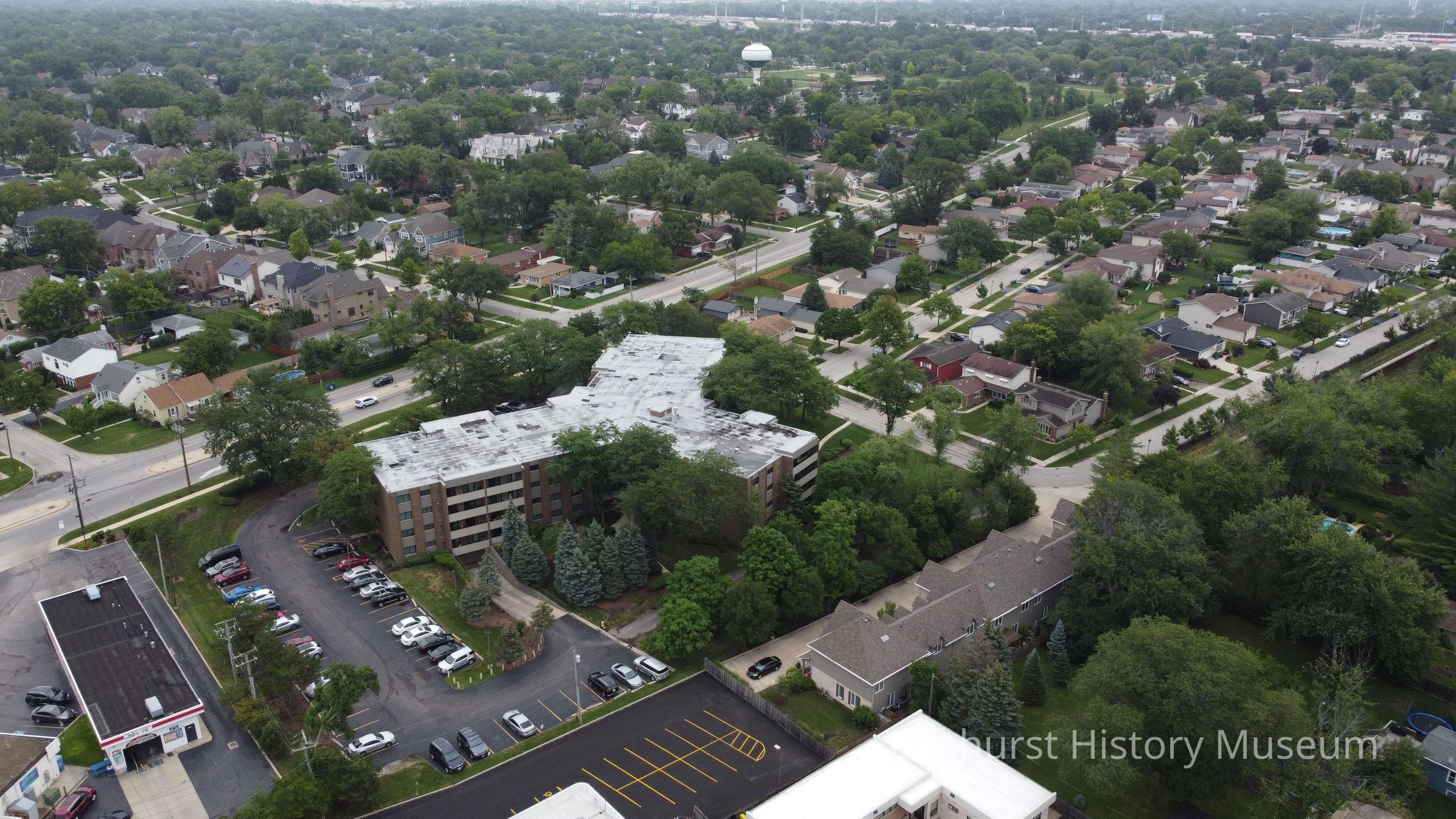Aerial view of Butterfield Towers apartment complex at 260 Butterfield Road, looking northeast.Photograph Details