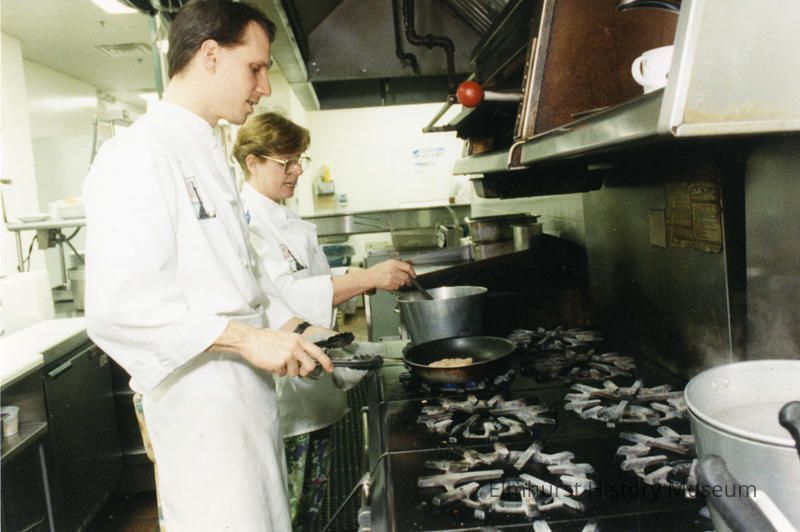 They are identified in ink writing on the back as "Michael and Gloria Duarte / Cafe Las Bellas Artes / 112 W. Park Ave. Elmhurst / April 1996."