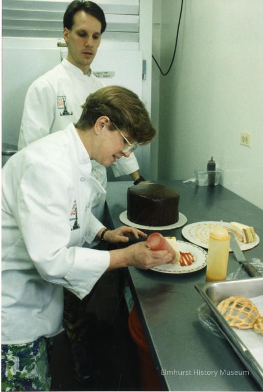 Image labeled in handwriting in ink on the back as "Gloria Duarte and Michael Duarte / Cafe las Bellas Artes / 112 W. Park Ave. Elmhurst / April 1996."Photograph Details