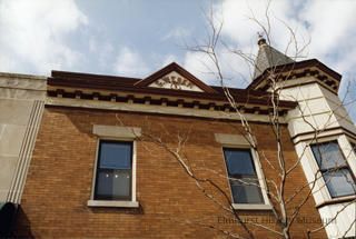 Detail work on the Commercial Block at 110-112 N. York Street, Weber Building