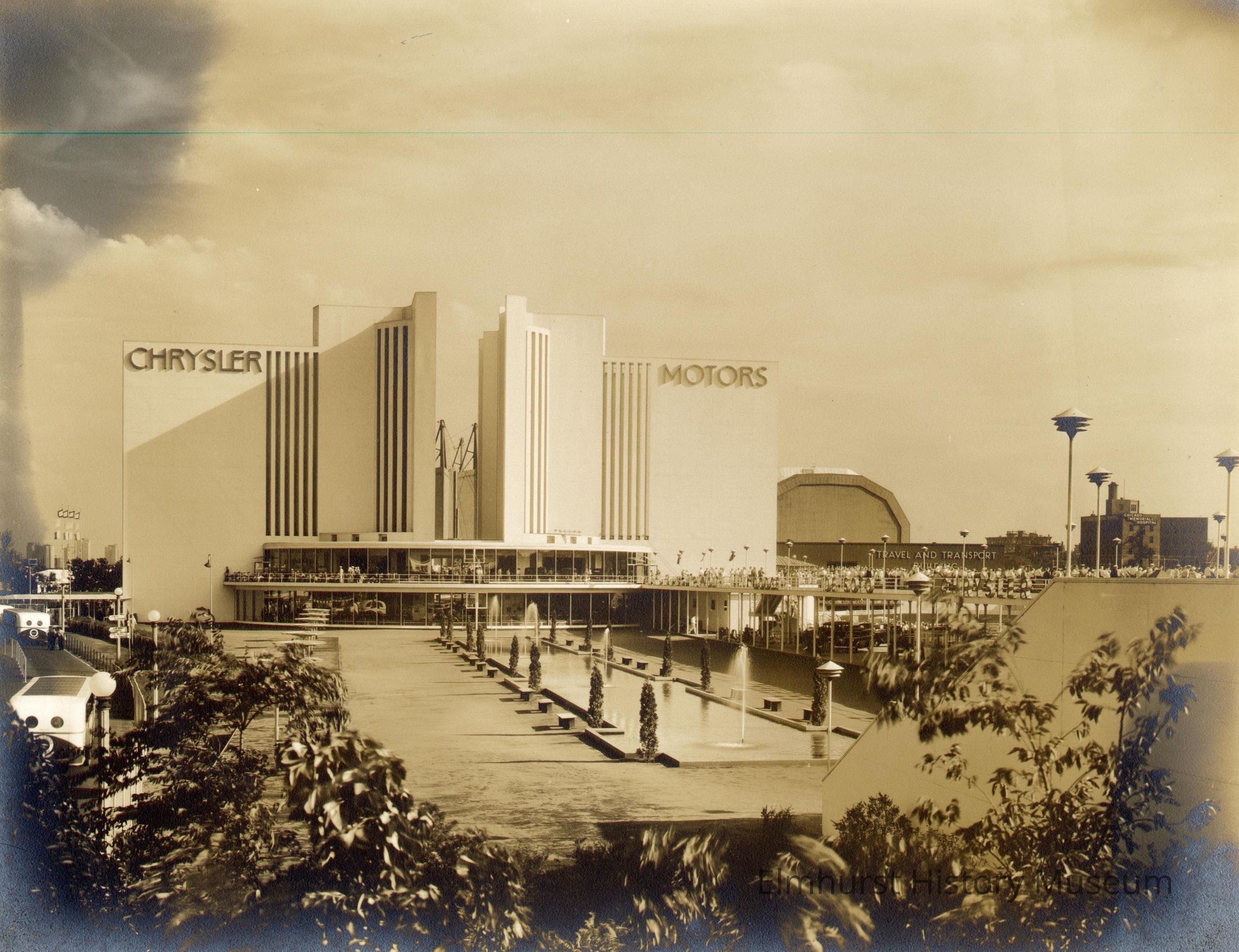 In handwritten script on back: 66. Langdon Longwell Collection - Century of Progress 1933-1934 Chrysler Motors Building In stamped script in a square on back: Hedrich-Blessing Studio, 540 N. Michigan Ave. Chicago, ILL. Neg 1606-C