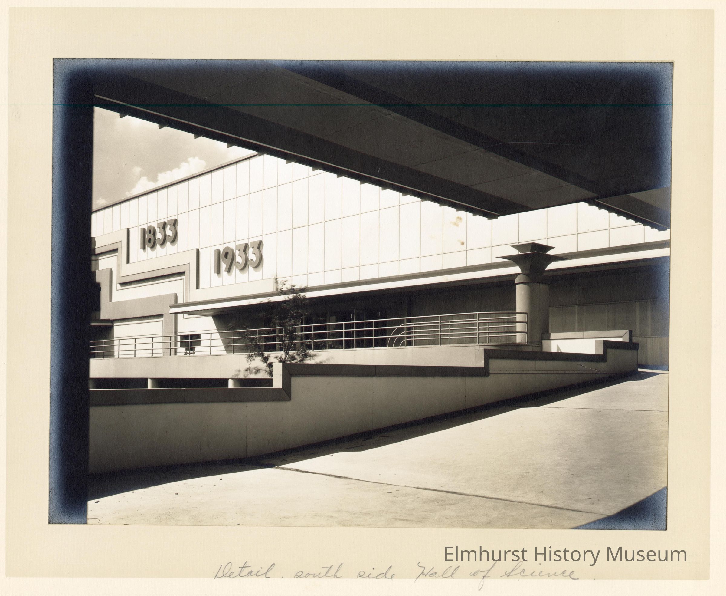 Photo is a detail from the south side of the Hall of Science at the Century of Progress World's Fair 1933-34 in Chicago. Photo is mounted on an ecru paperboard mat.Photograph Details