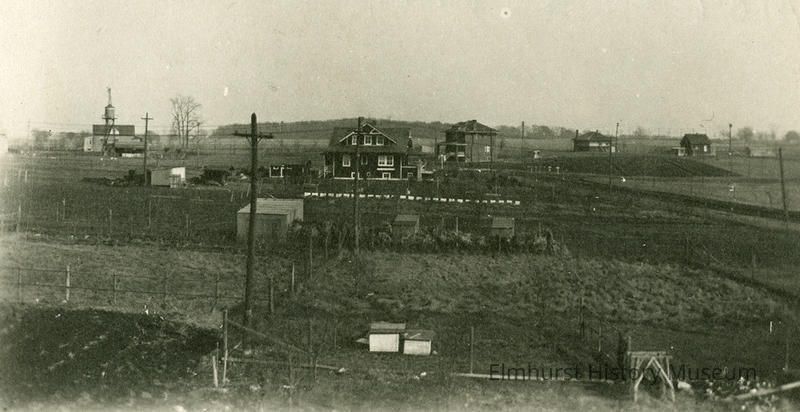 A panoramic view of Cherry Farm Subdivision. The house in the center of the frame is the Walter Schneider house on the corner of May Street and Prairie Avenue.Photograph Details