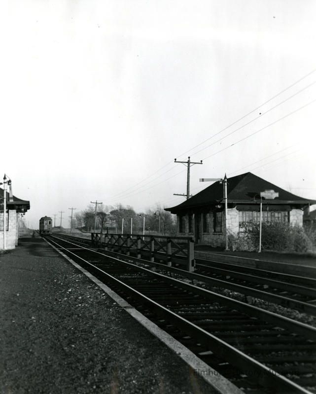 Chicago Aurora & Elgin Railway stations, on north and south side of the tracks, just east of Poplar Avenue, looking east.Photograph Details