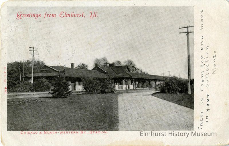 Printed in red on front "Greetings from Elmhurst, Ill. Chicago & North-Western Ry. Station.