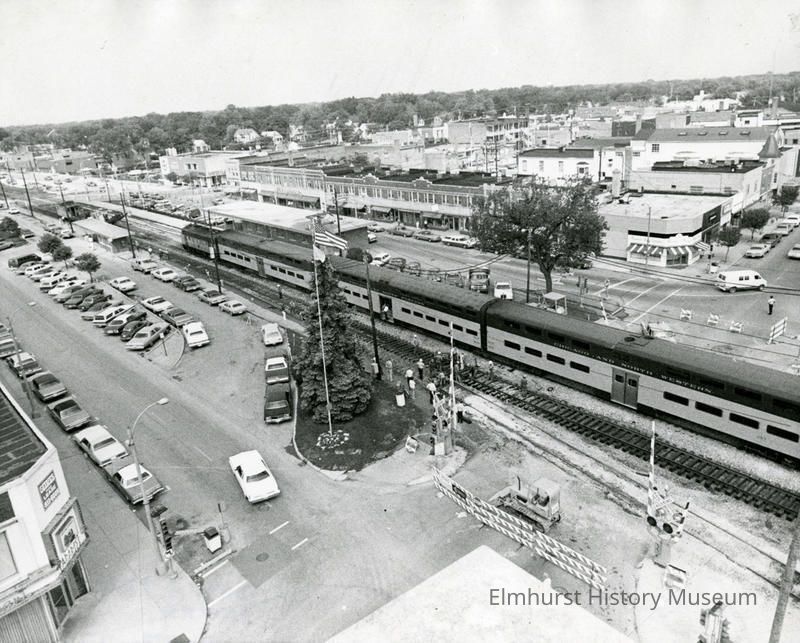 Chicago & North Western train stopped at the Elmhurst station during the construction of the Palmer underpass.Photograph Details