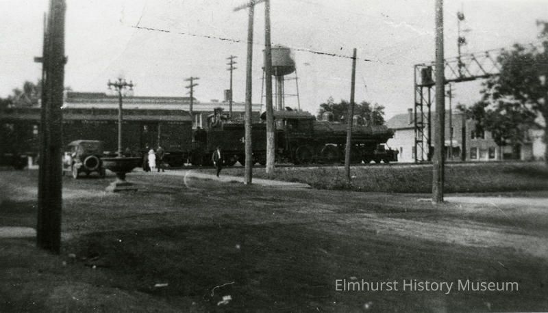 Chicago & North Western steam locomotive, looking northeast at York Street crossing