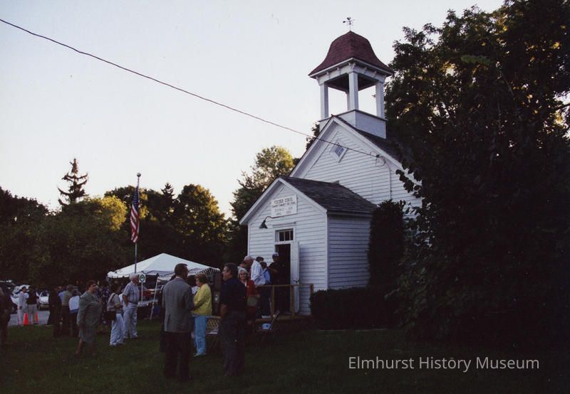 Written on back: Ceremony when the City of Elmhurst acquired Churchville One Room Schoolhouse. Sept. 2001