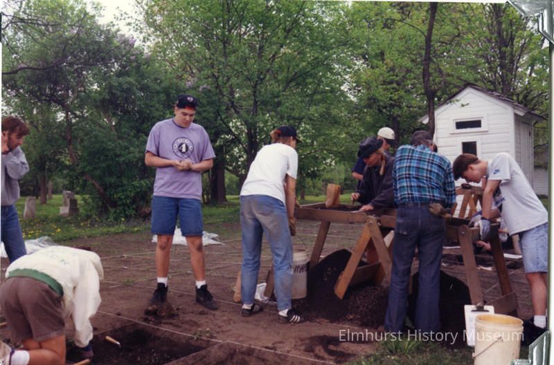 An excavation for historical materials by York Community High School students on the Churchville Schoolhouse grounds.Photograph Details