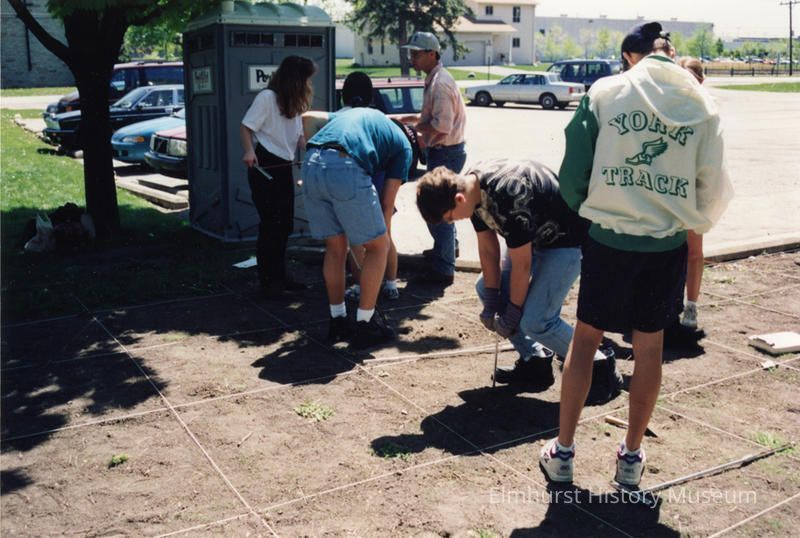 York Community High School students during an excavation for archaeological materials on the Churchville Schoolhouse grounds.Photograph Details