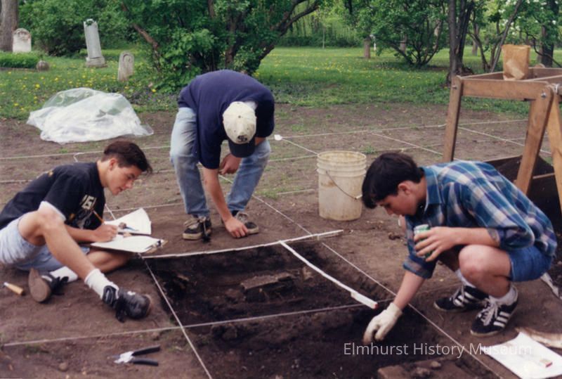 An excavation for historical materials by York Community High School students on the Churchville Schoolhouse grounds.Photograph Details