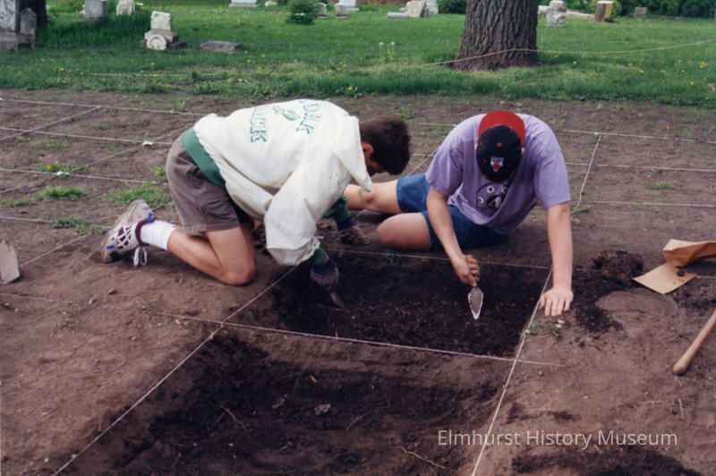An excavation for historical materials by York Community High School students on the grounds of Churchville Schoolhouse.Photograph Details