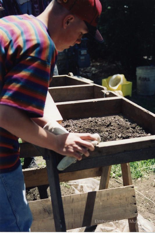An excavation for historical materials by York Community High School students on the Churchville Schoolhouse grounds.Photograph Details