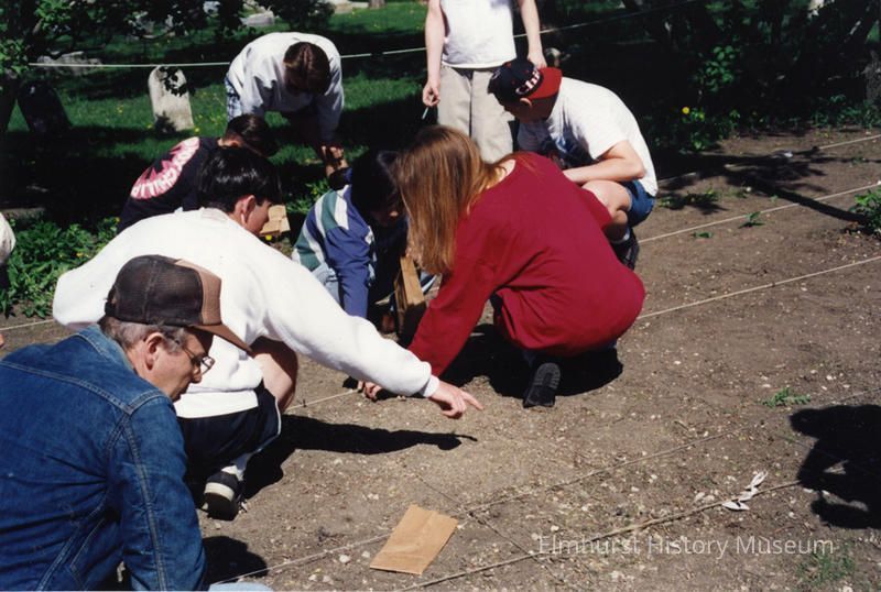 York Community High School students at excavation site on Churchville Schoolhouse property during a search for archaeological materials.Photograph Details