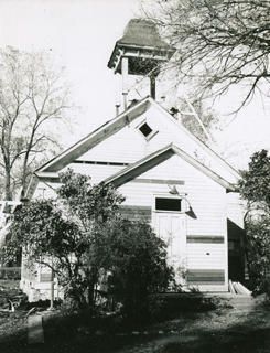 Churchville Schoolhouse with scaffolding from a renovation project.Photograph Details