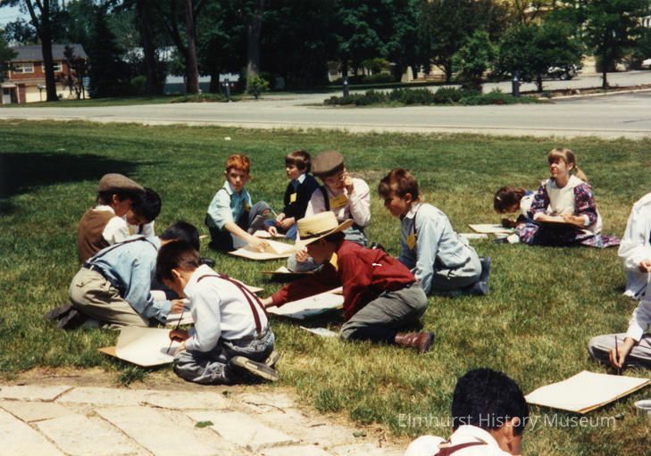 School District 205 students participating in a program at Churchville SchoolhousePhotograph Details