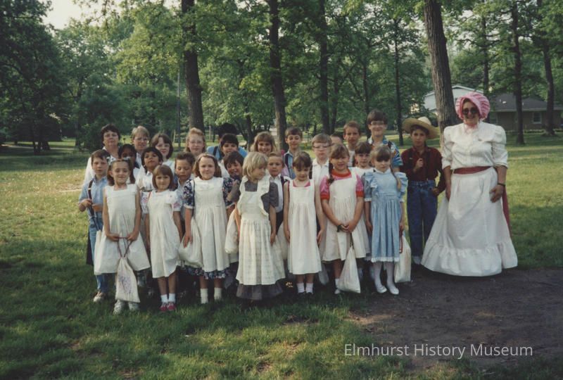 Elmhurst School District 205 students participating in a program at Churchville SchoolhousePhotograph Details