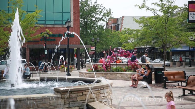 City Centre Plaza and fountain, looking northwest towards the intersection of York and Schiller StreetsPhotograph Details