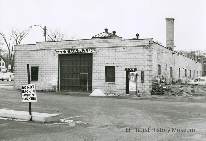 Elmhurst City Garage, in the Schiller Street parking lot, south of Schiller between York and Haven Streets, taken shortly before its demolition.Photograph Details