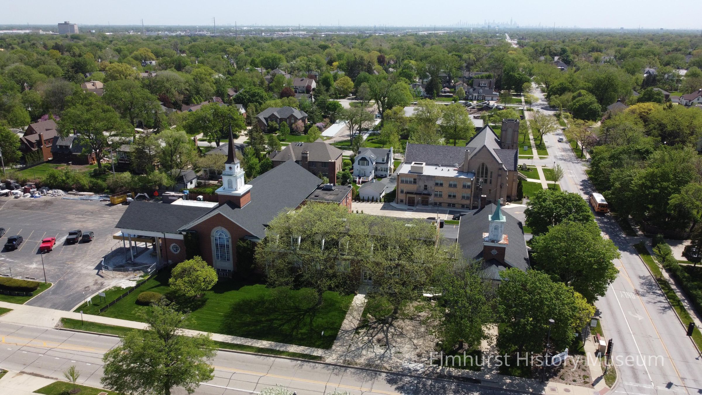 Aerial view of Cityview Community Church at 343 S. York Street, looking east.Photograph Details