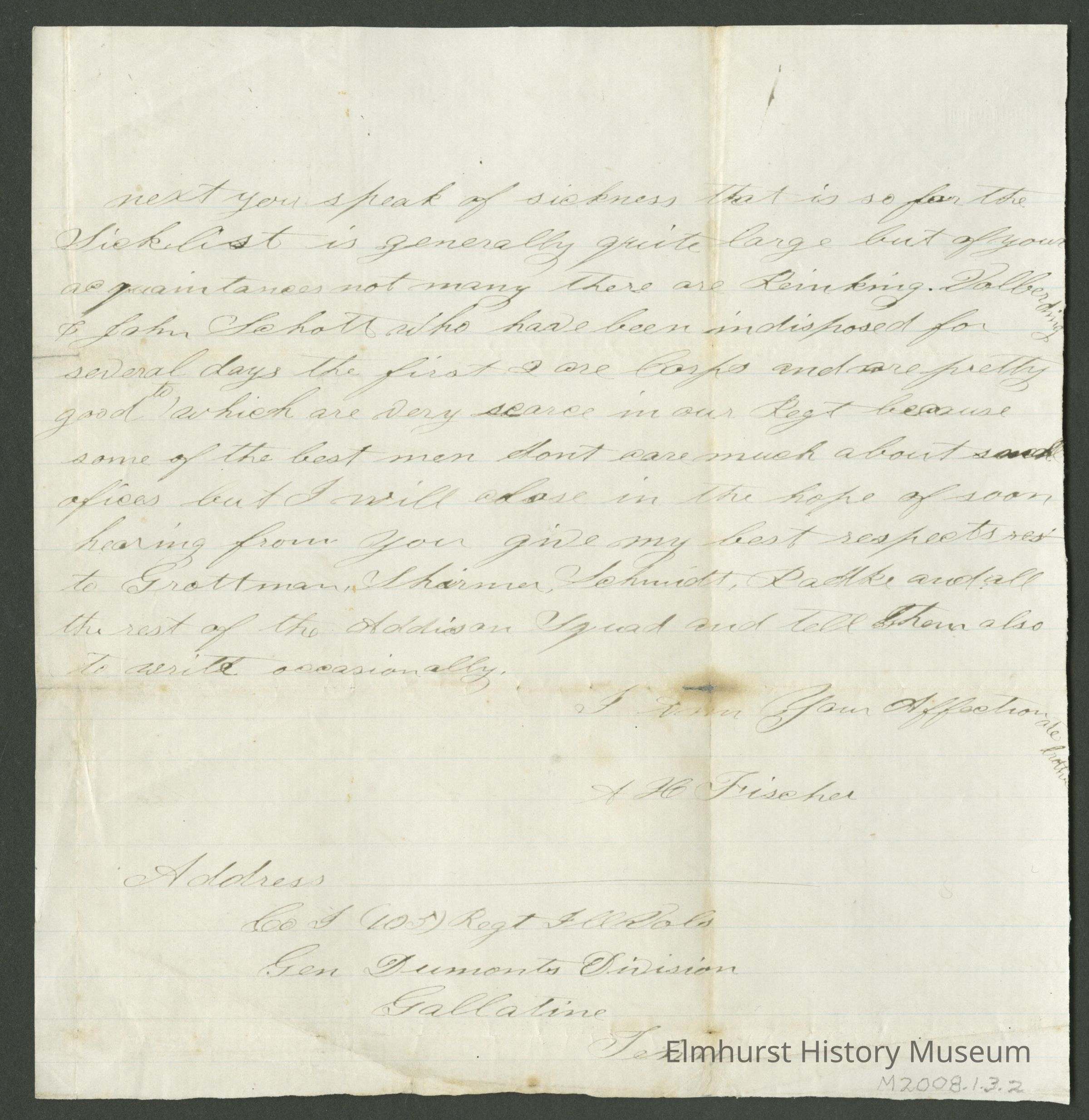 Civil War-era Letter to Frederick FischerEntry/Object ID