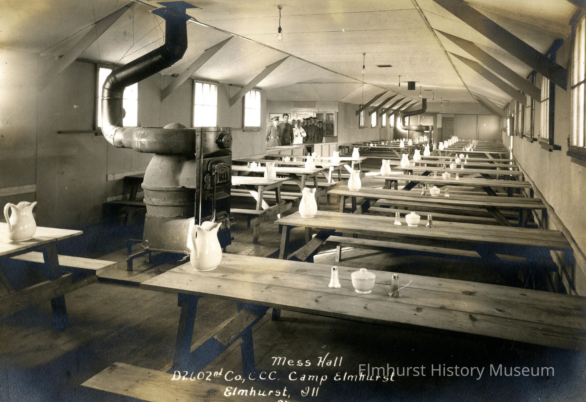 White hand printed identification at the bottom center reads "Mess Hall / D2602nd Co., C.C.C. Camp Elmhurst / Elmhurst, Ill / DX."