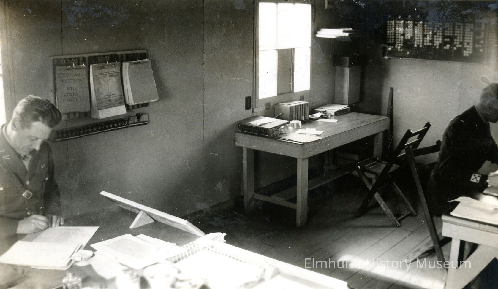 Photograph, Civilian Conservation Corps Camp Elmhurst officers in an office space.