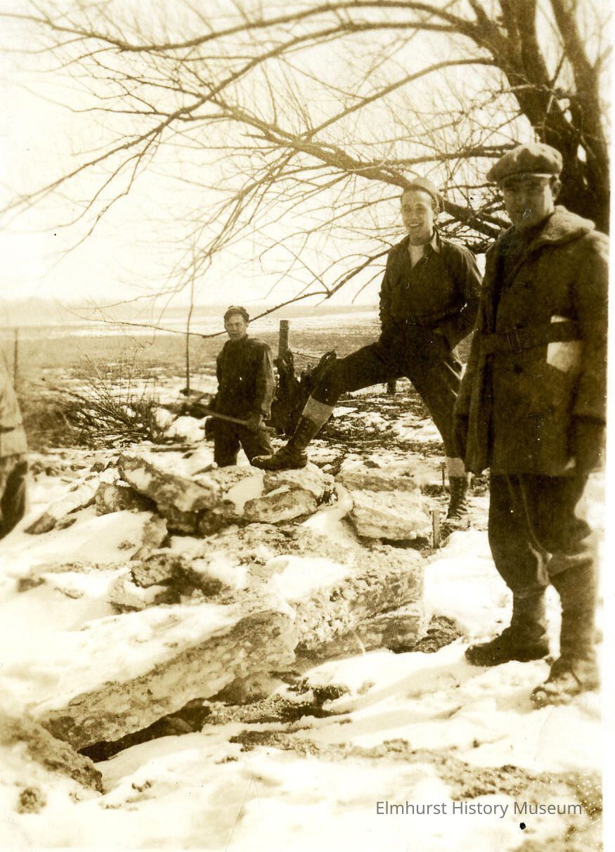 Group of CCC Camp Elmhurst volunteers at work in the winter months.