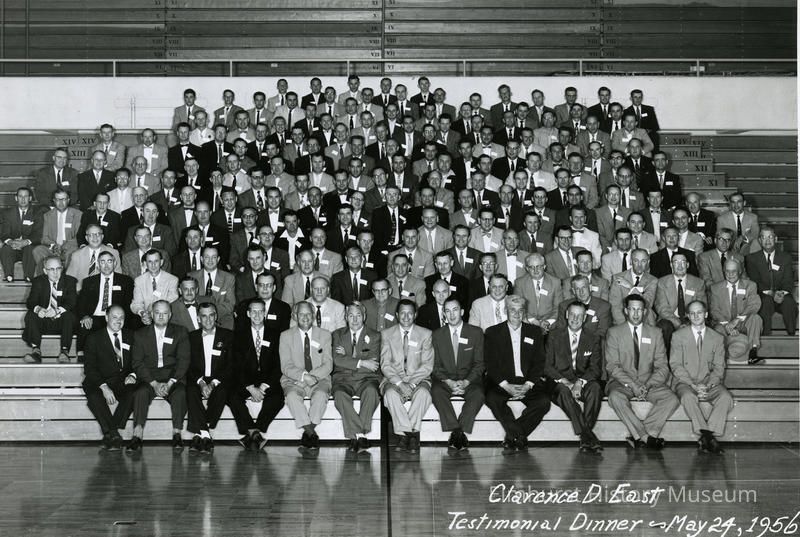 Stamped on back in red: Delmar Studio 152 N. York St. Elmhurst, ILL Written in white on front lower right corner: Clarence D. East Testamonial Dinner - May 24, 1956