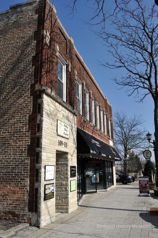 Commercial Block at 109-111 E. First Street, containing Red Arrow Tap Room, Gloria Jean's Coffee, DuPage Dance Academy, and other tenants.Photograph Details