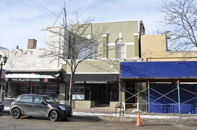 Wandschneider building at 126 N. York Street. The building was vacant at the time of the photograph. The Plass Appliance Building at 134 N. York Street is being demolished at right. 126 N. York was demolished in September 2024.Photograph Details