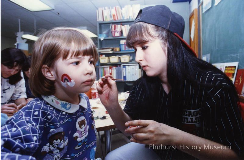 Scene is identified in inked caption on the back as "Face painting / Conrad Fischer School Fun Fair / March 1992."