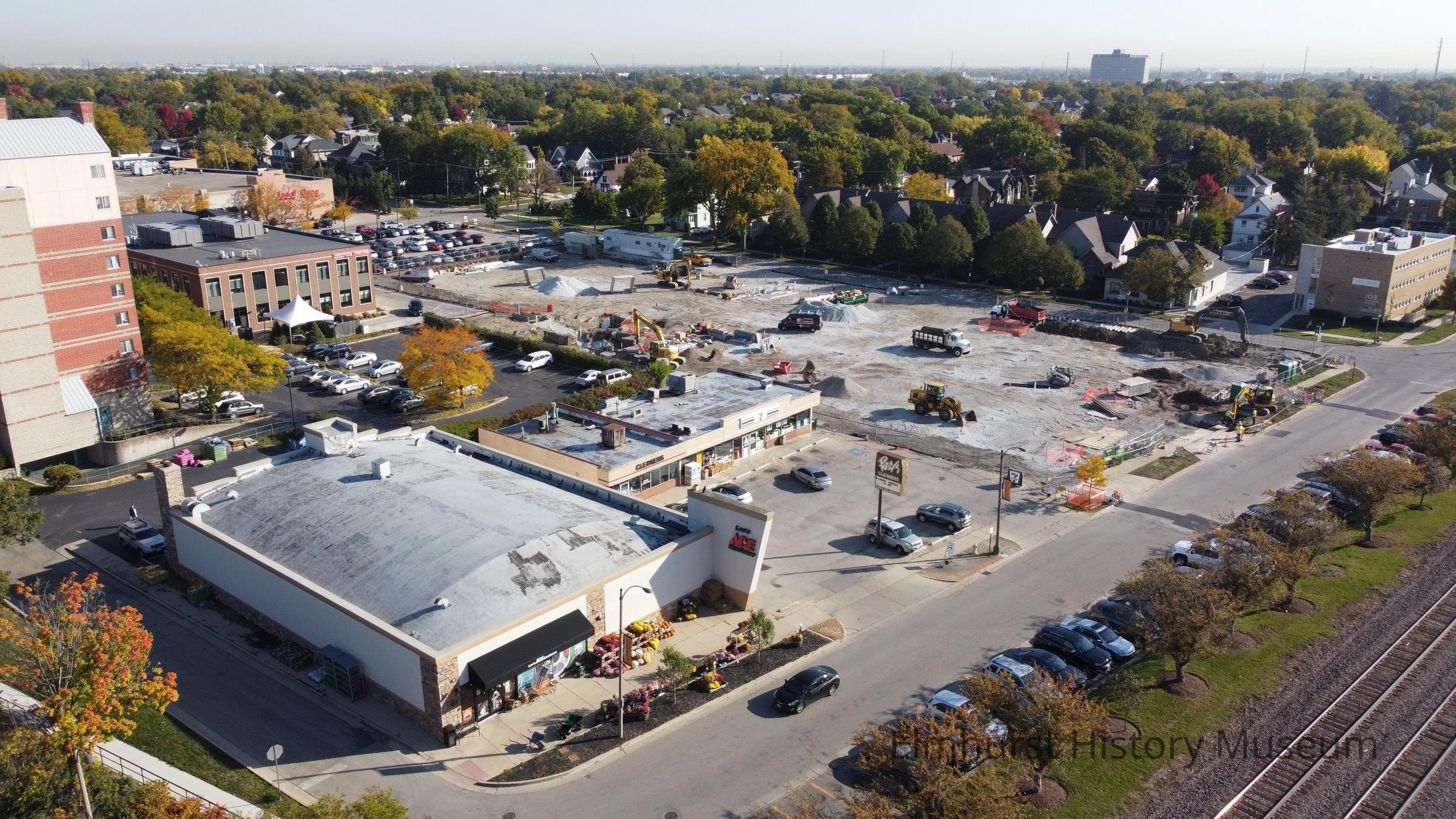 Aerial view of the construction site for the "Vyne on Haven" condominium building at the northwest corner of E. First Street and Haven Road, looking northeast.Photograph Details
