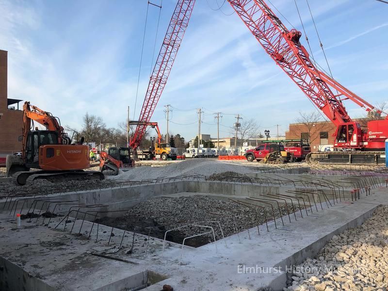 Construction of The Hill condos at 105 Cottage Hill Avenue, taken from W. Park Avenue looking east. The public library and post office are visible in the background.Photograph Details