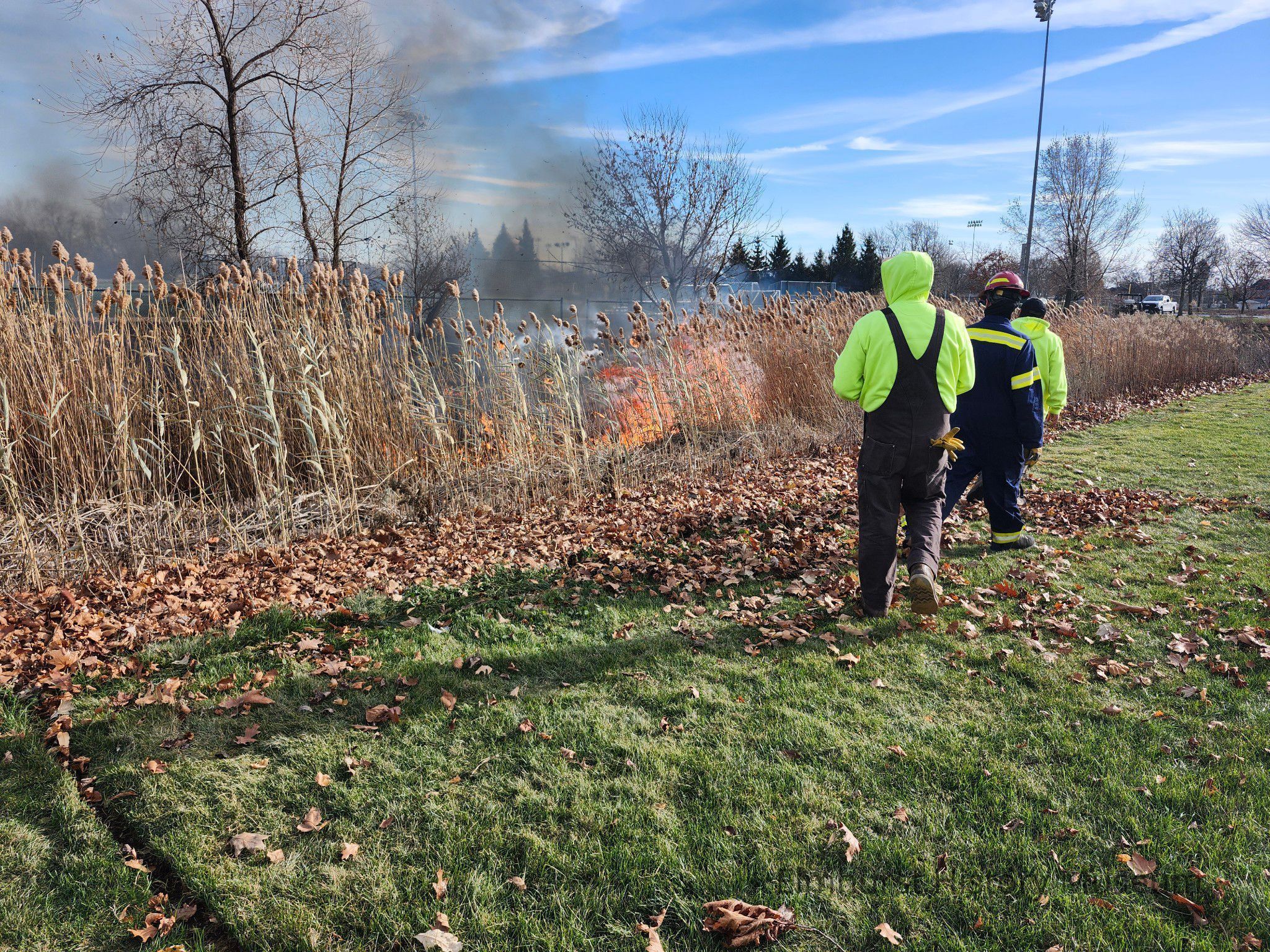 Controlled burn of prairie areas at Berens Park by the Elmhurst Park District.Photograph Details