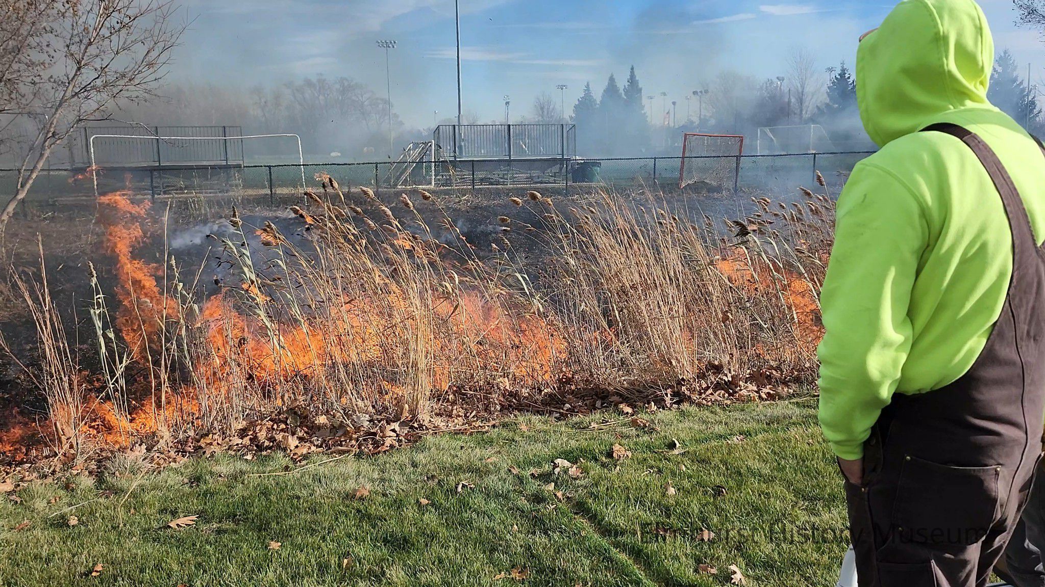 Controlled burn of prairie areas at Berens Park by the Elmhurst Park District.Photograph Details