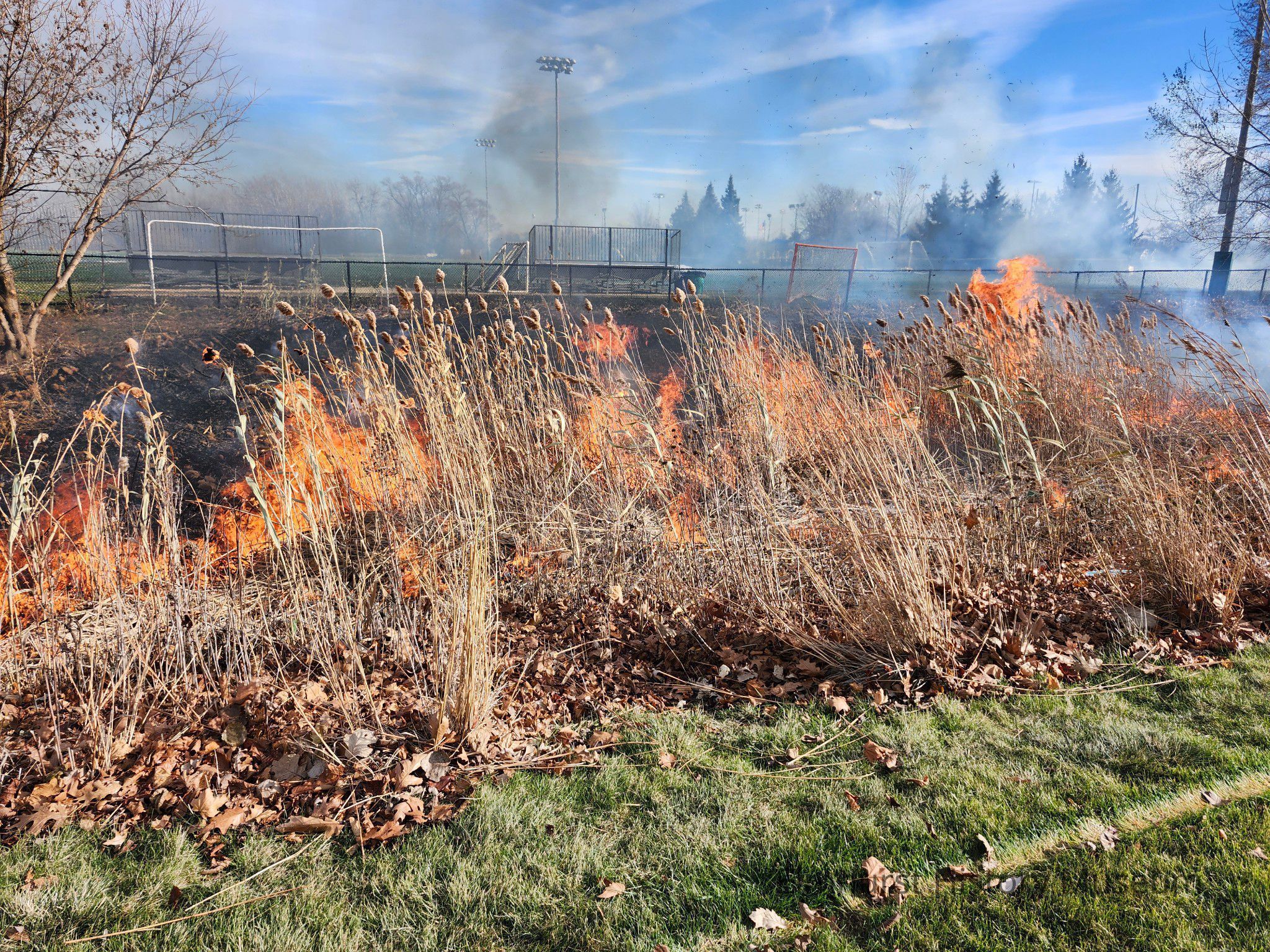 Controlled burn of prairie areas at Berens Park by the Elmhurst Park District.Photograph Details