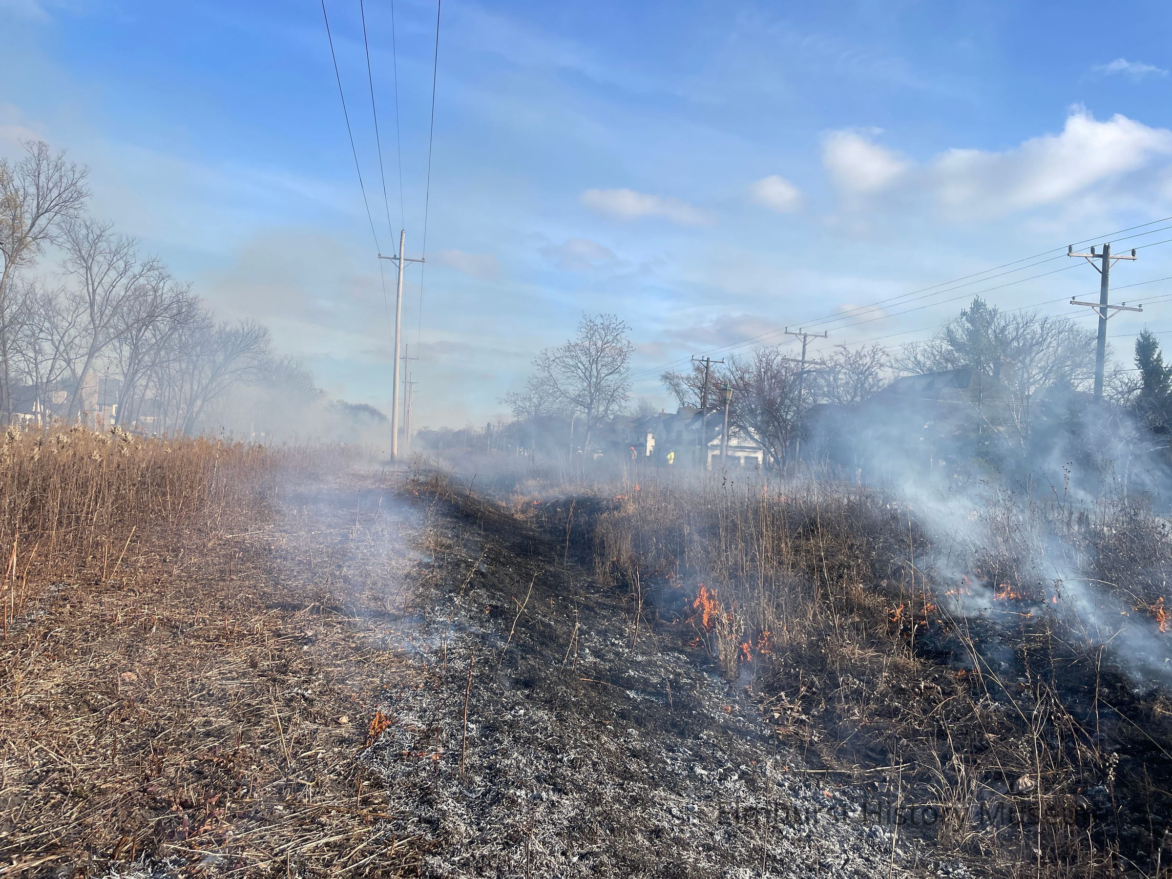 Controlled burn areas at the Keith A. Olsen Prairie along the Prairie Path by the Elmhurst Park District.Photograph Details