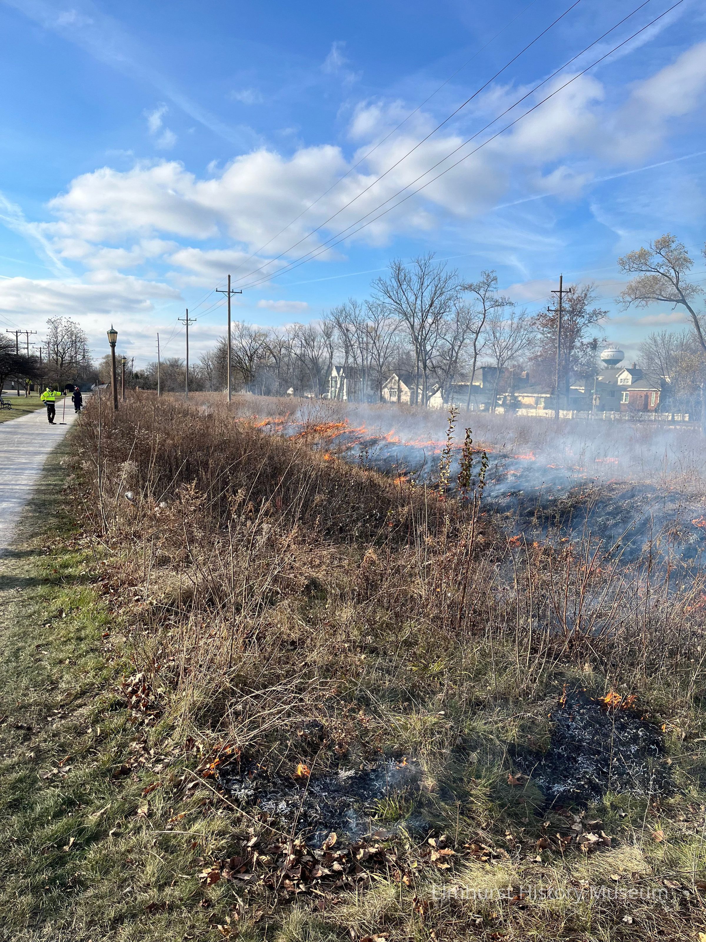 Controlled burn areas at the Keith A. Olsen Prairie along the Prairie Path by the Elmhurst Park District.Photograph Details