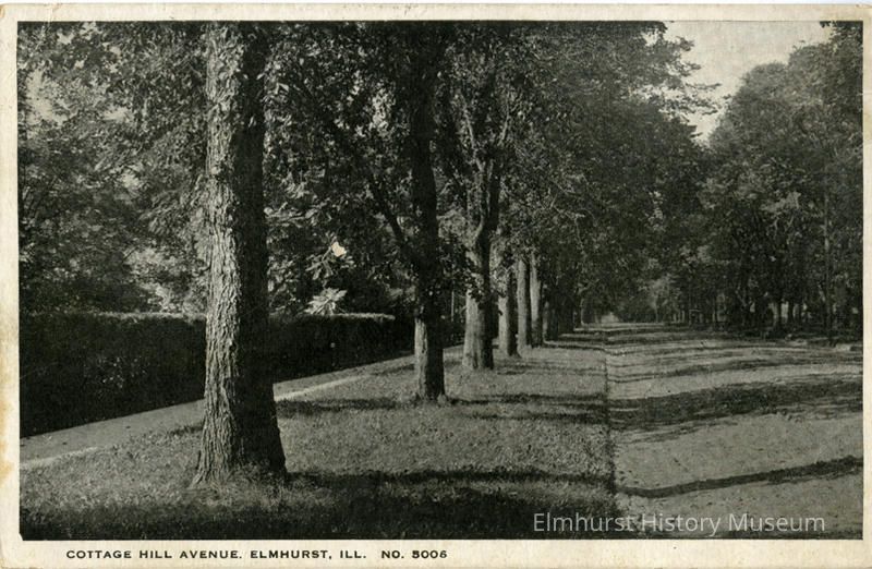 "Cottage Hill Avenue, Elmhurst, ILL No. 5006" is printed on left-hand corner in black in lower margin. A handwritten message in black ink from "Louis Pinckert" is addressed to "Mr. Philip Triem Jr. / Monee, Ill." Card is postmarked 1917 and bears a one-cent green stamp.Photograph Details