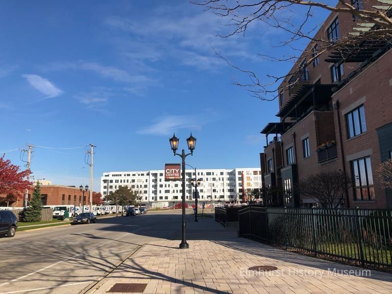 Cottage Hill Avenue looking north towards W. Park Avenue. The Marke / Opus Development apartments are being constructed in the background at 100 N. Addison Avenue.Photograph Details
