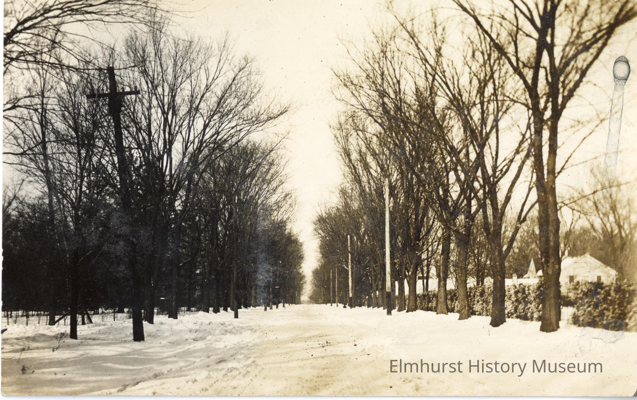 Winter scene of Cottage Hill Avenue, looking north along the Wilder property at left.Photograph Details