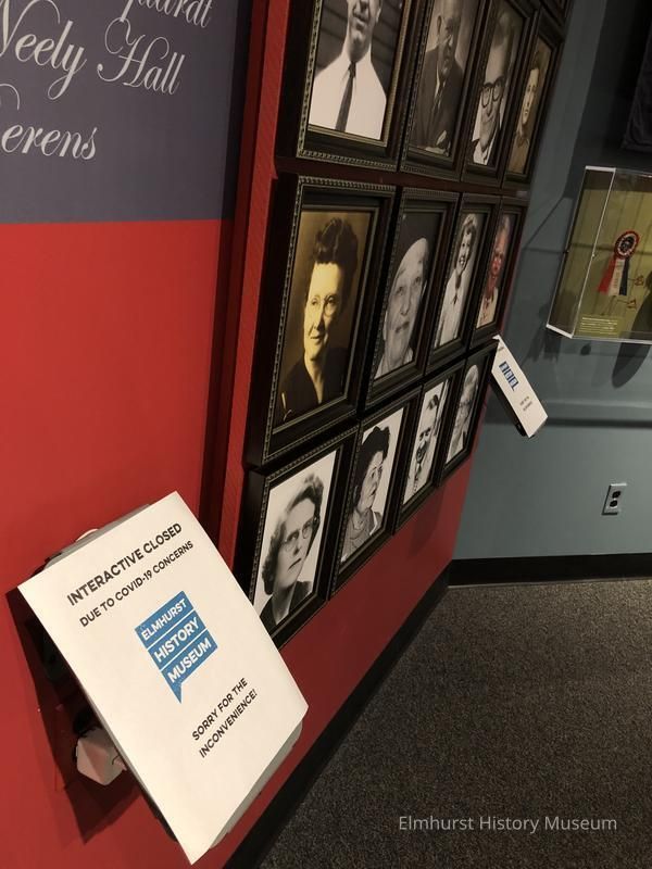 Interactive iPad components in the By All Accounts core exhibit on the second floor of the Elmhurst History Museum turned off due to Covid-19 concerns.Photograph Details