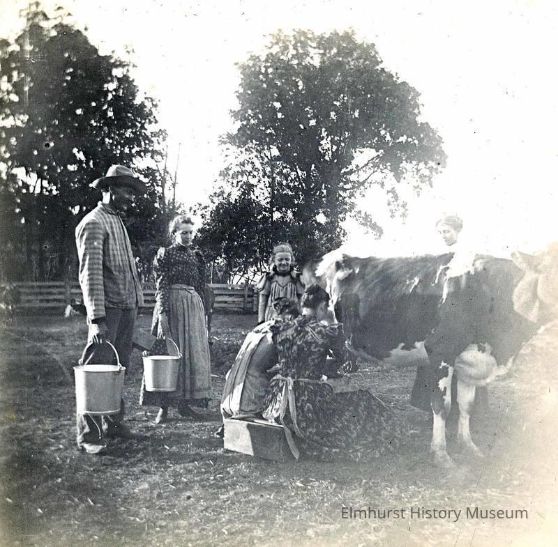 A cow is milked at the Fischer Farm near Grand Avenue.